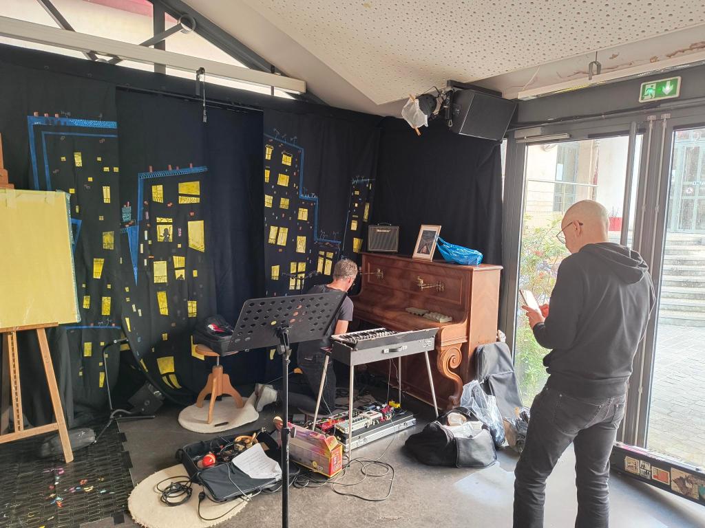 Dés 14h00, c’est l’installation du décor et une mise en place technique pour une partie du collectif. Balance, répétition de la chorégraphie.